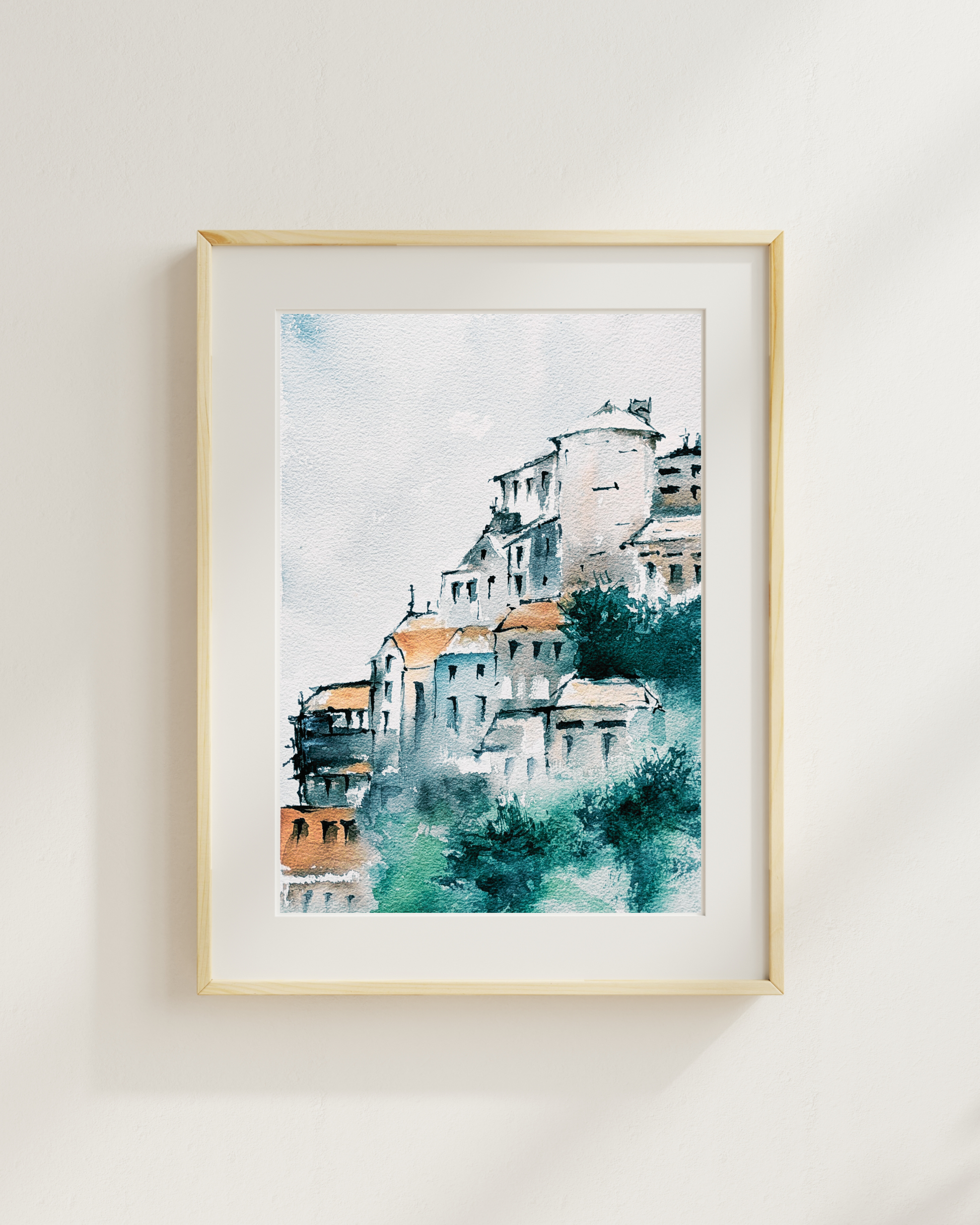 Watercolours on 300g rough grain 100% cotton, cold pressed, acid free artist paper. Original. Dimensions: 23 x 31 cm. Signed on the front.